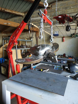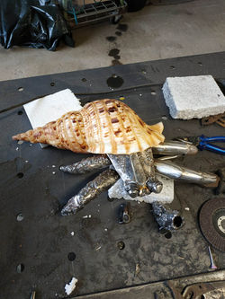 Soudure à la semi, acide, sculpture et découpe à la meuleuse. Grignoteuse et ponceuse, chalumeau, fraiseuse, aérogommage