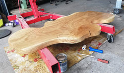 Utilisation de la fraiseuse et installation d'une latte en acier pour empêcher le nœud du socle en chêne de craquer ;