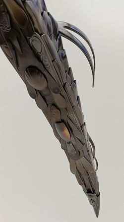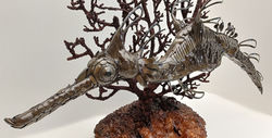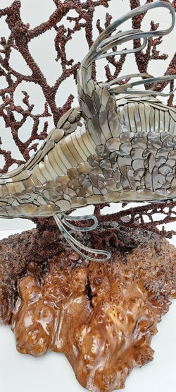 Dans un monde de poissons pressés, le phyllopteryx prend tout son temps. Grâce à sa structure allongée et fragile, il flotte, il parade. C’est une ode vivante à la lenteur esthétique. Ainsi, en le sculptant, j’ai voulu en faire un messager : celui d’un monde où le bizarre devient beauté, où l’extravagance est naturelle et où la poésie a des nageoires.
