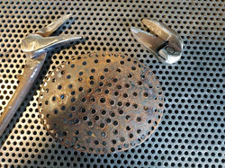 - Pièces recyclées : cuillères, fourchettes, couteaux, casses-noix, tôle et barre de métal ;