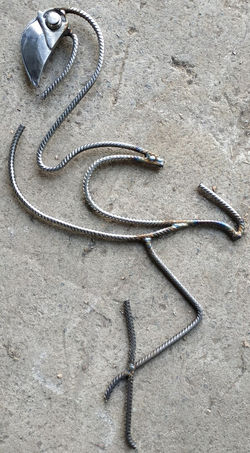 Le week-end, nous sortons parfois en famille pour nous promener et chiner dans diverses brocantes de notre région en vue d'obtenir mes «matières premières». C'est durant l'un de ces marchés aux puces que je suis tombé par hasard sur un sécateur déposé à l'envers, tête en bas. C'est grâce à cette position qu'il m'a directement fait penser à une tête de flamant rose ! Il ne me manquait plus qu'à étudier le corps de l'animal et à trouver les pièces pour le créer !